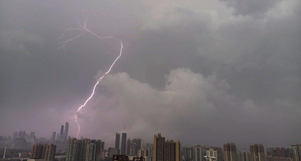 白云龙卷超单的出流边界在市区触发的雷暴 白云龙卷超单(疑似中气旋)下的闪电 雷达组合反射率拼图 第二波进入市区的超单FFD内 超单后部的闪电 18:36广州雷达1.5仰角基本反射率,可见左右两个超级单体风暴,具有明显的钩状回波特征 超级单体风暴的云砧 凌晨的最后一波,闪电频率较高 云闪